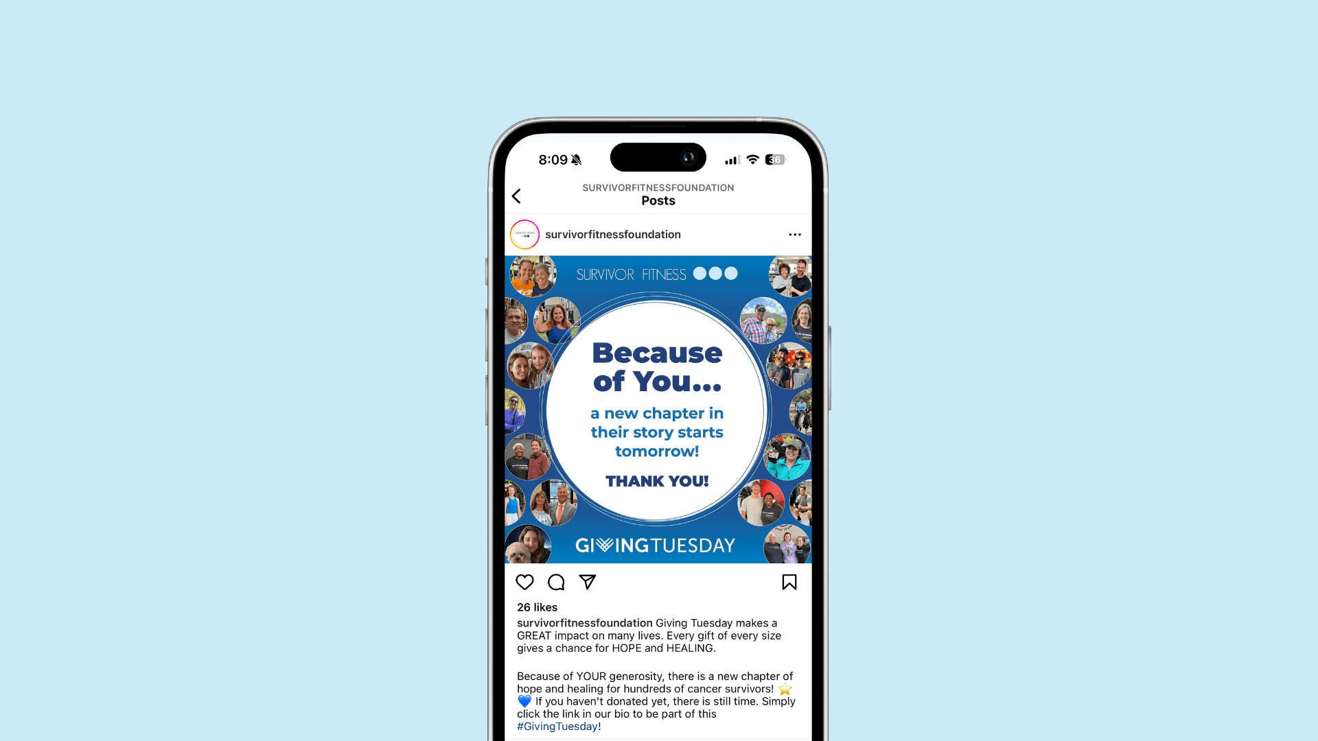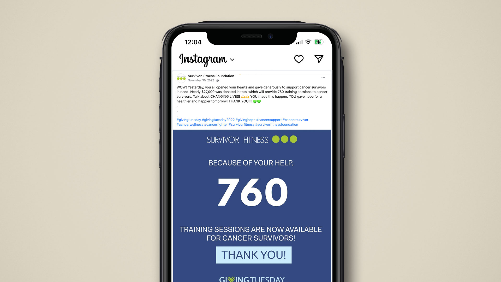 Survivor Fitness reached the original $7,500 goal within hours of launching the campaign. This prompted their team to increase their fundraising goal that day.At the end of the campaign, Survivor Fitness raised more than $20,000 in just one day through its Giving Tuesday campaign.
